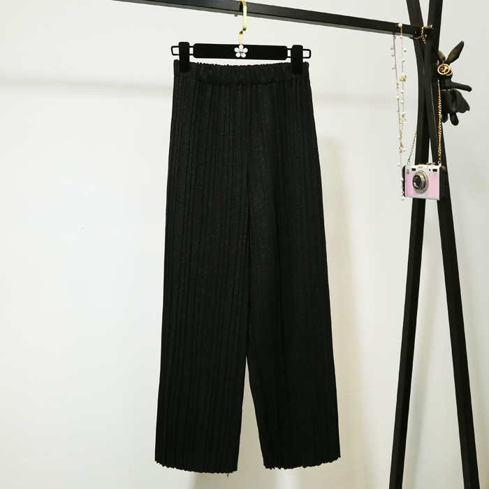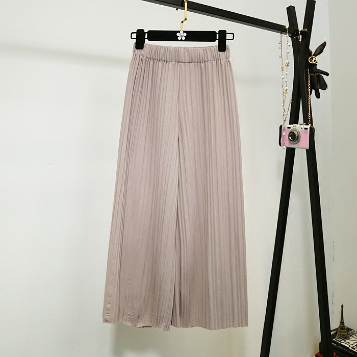 春夏新款休閑褲女韓版學院風寬松高腰百褶闊腿褲九分褲直筒褲