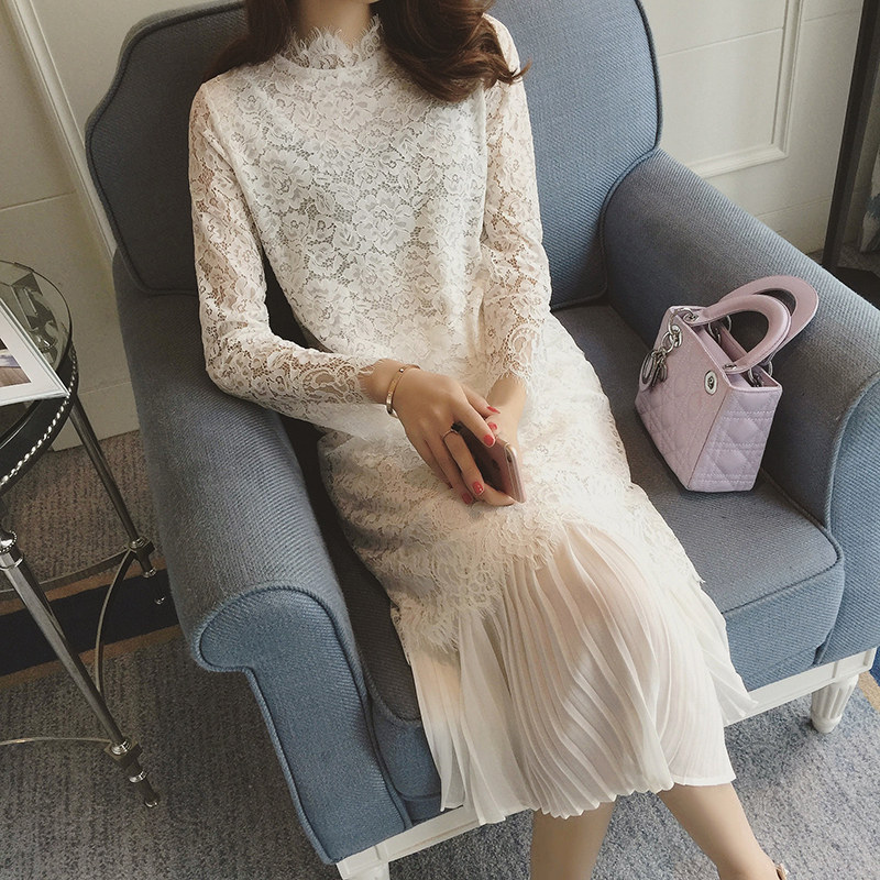 / 白色蕾絲連衣裙秋冬款2017春季新款大碼長袖打底顯瘦中長款女加絨