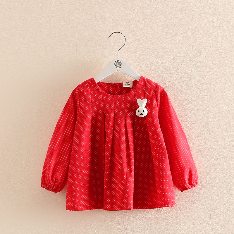 / 寶寶小兔子裙衫 秋裝韓版新款女童童裝 兒童波點襯衫tx-6492