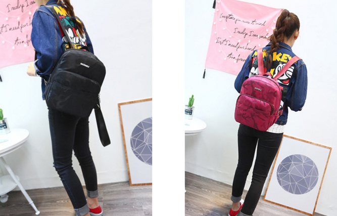 / 女雙肩包旅行休閑戶外防水尼龍布學生書包 暗花大容量牛津布背包