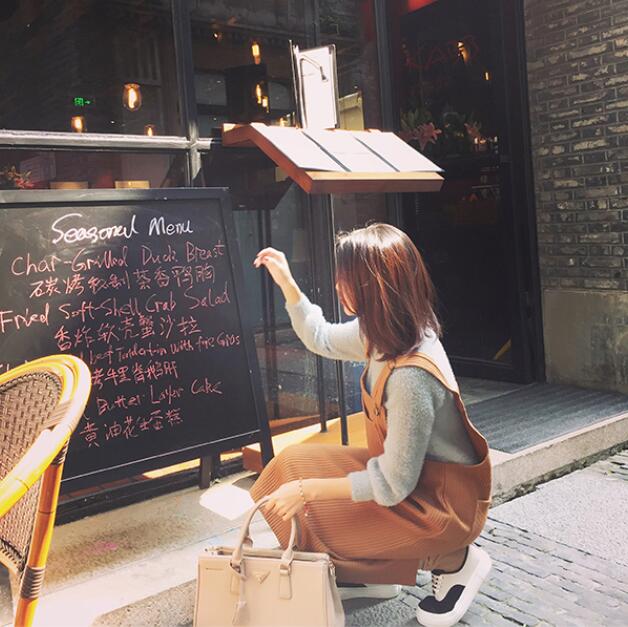 / 韓版2017春季新品寬松中長款大口袋后開叉螺紋厚實背帶裙連衣裙子