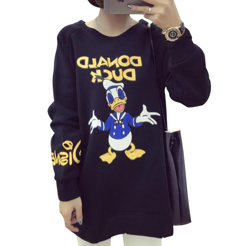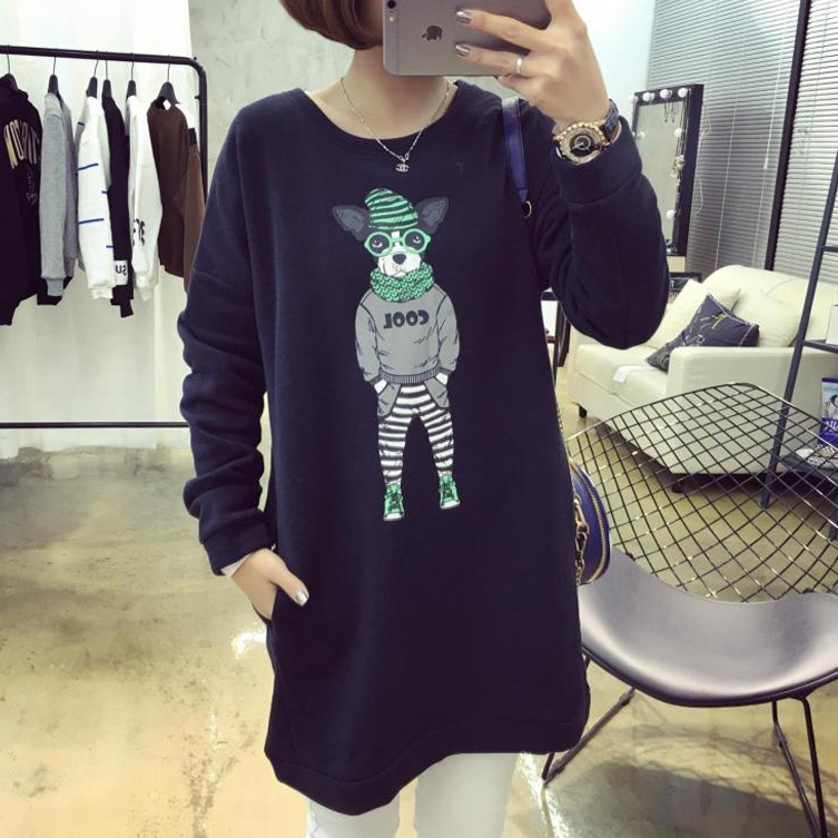 / 卡通印花學生圓領中長款女裝韓版小外套加絨加厚套頭保暖衛衣女潮