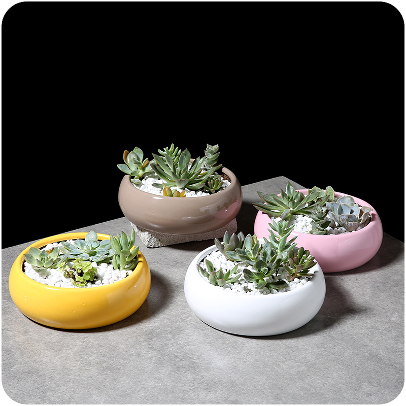 / 桌面創意大號陶瓷花盆簡約大肚圓形多肉植物花卉種植糖果色花器