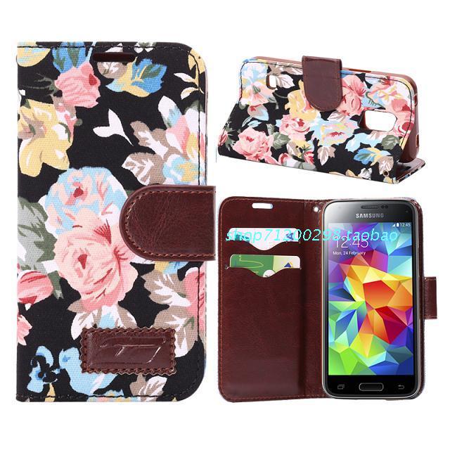 三星Galaxy S5mini 牛仔布 花布 皮套 G800 手機套 左右開翻 支架插卡 保護套外殼 批發