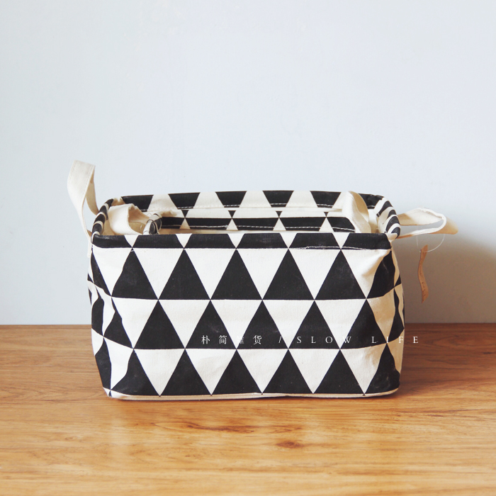 外貿單黑白三角字母棉麻桌面收納籃收納盒 布藝儲物籃家居收納筐