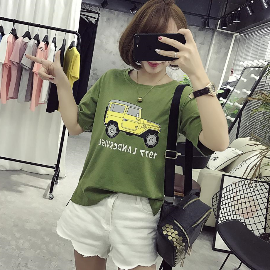 女裝學生卡通T恤女簡約新款上衣寬松短袖t恤大碼顯瘦夏裝打底