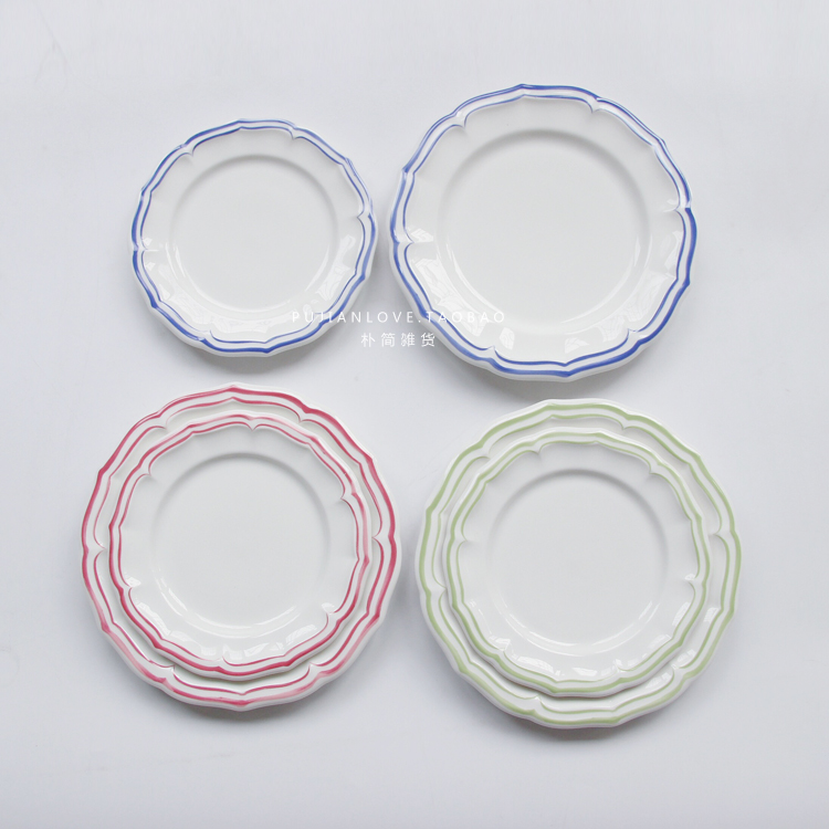 樸簡 北歐簡約描邊花形陶瓷餐盤 8寸盤子日式 甜品蛋糕盤套裝