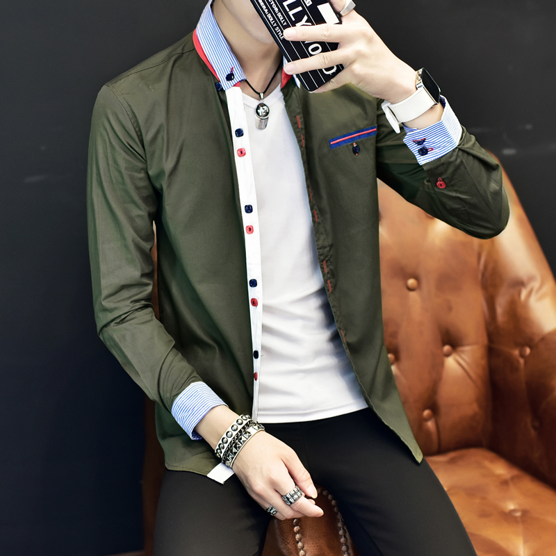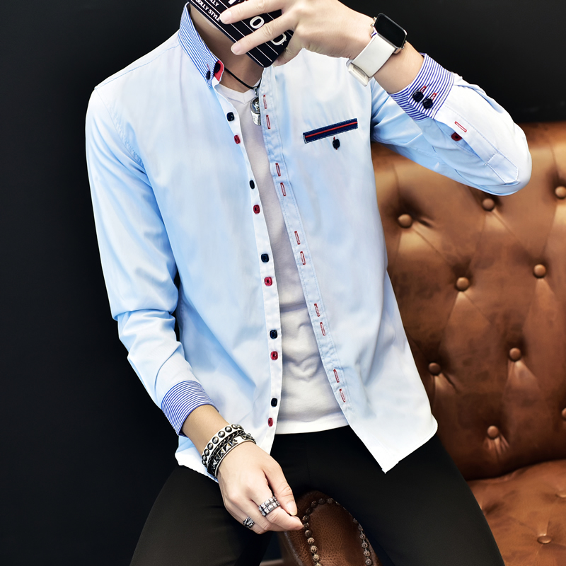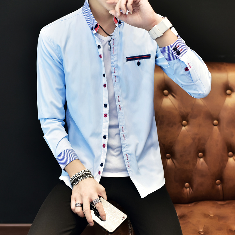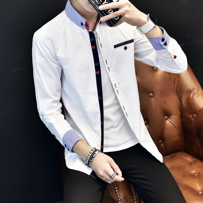 / 韓版修身襯衣青年大碼長袖襯衫男士休閑寸衫春新款男裝