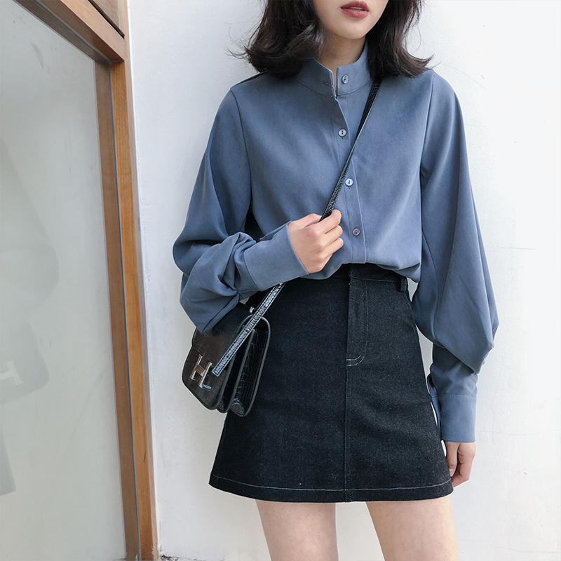 A7seven牛仔半身裙女2019春裝新款明線A字裙韓版黑色高腰顯瘦短裙