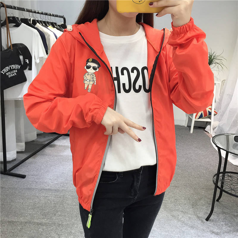 連帽卡通印花防曬衣女2017夏裝新款韓版學院BF風情侶學生薄外套潮