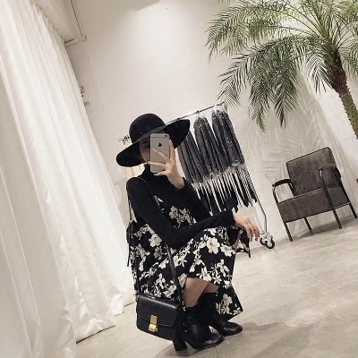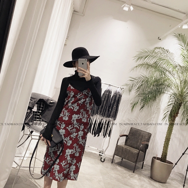 / 春季新款女裝細肩帶寬松顯瘦花朵雪紡外穿吊帶連衣裙開叉長裙女