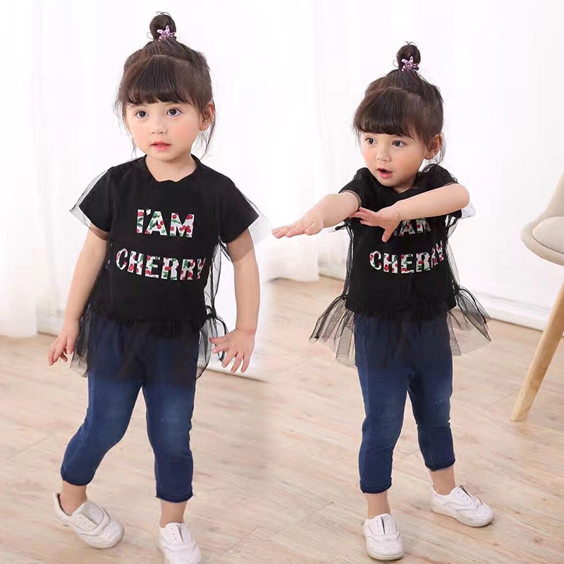 / 女童裝t恤短袖夏季女寶寶薄款打底衫韓版字母時尚網紗上衣服