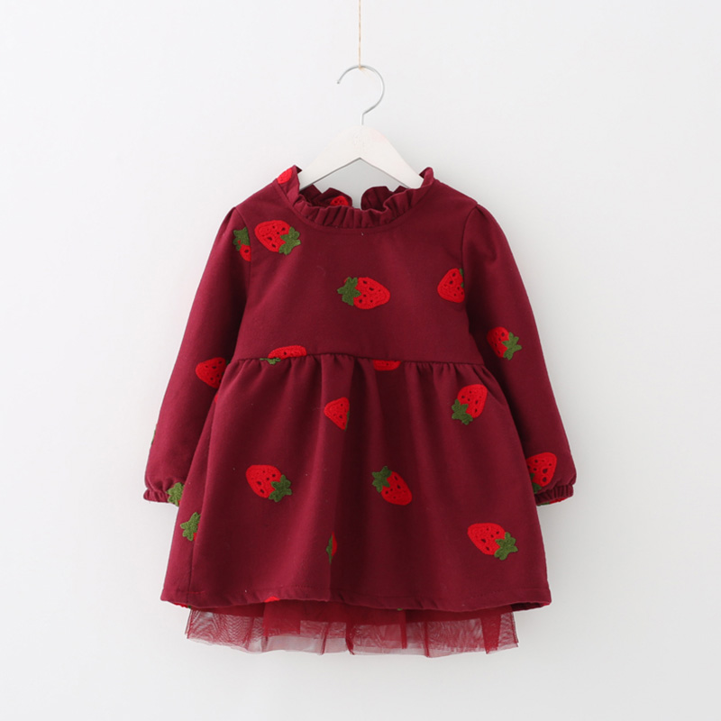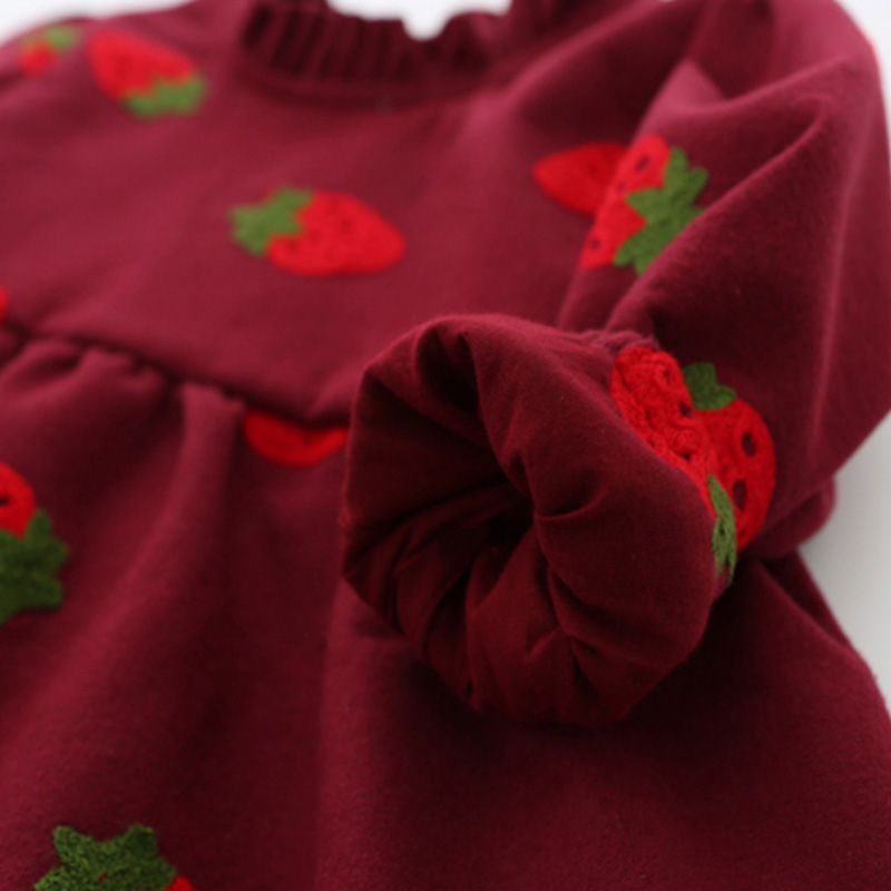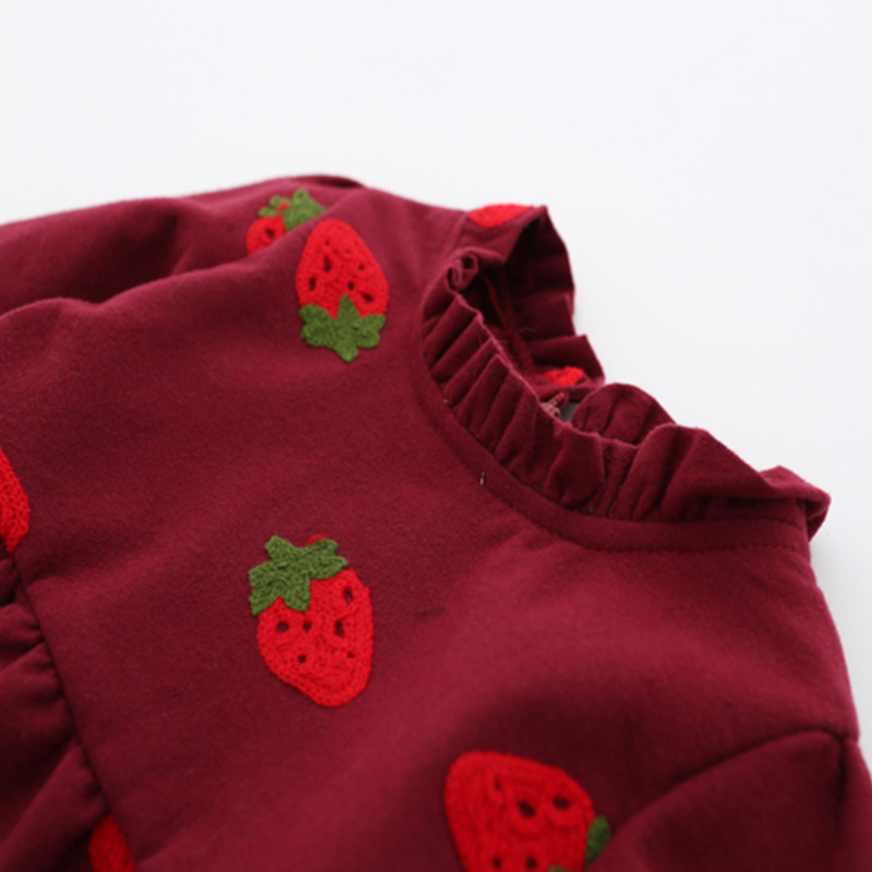寶寶草莓裙衣 冬裝新款女童童裝兒童加絨娃娃衫上衣tx-6365