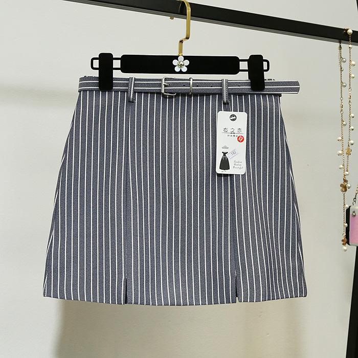 春季女裝新款韓版復古高腰顯瘦條紋半身裙一步包臀A字短裙夏