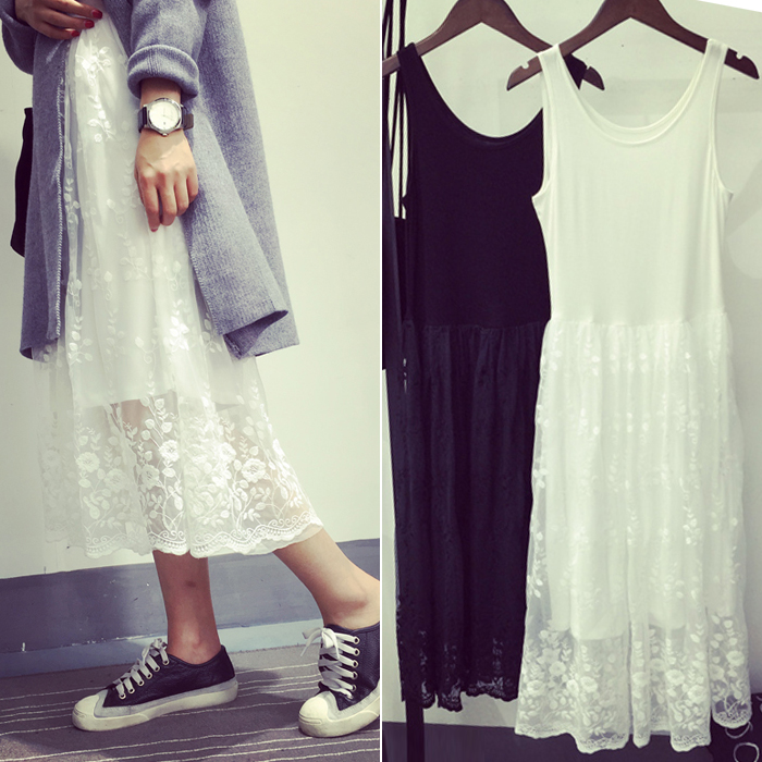 裙子是棉的小背心拼接蕾絲的中長裙子的呦