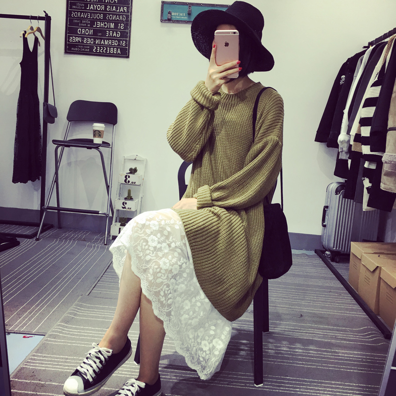 蕾絲中長款時尚潮連衣裙秋冬季無袖內搭打底衫背帶裙女裝修身韓版