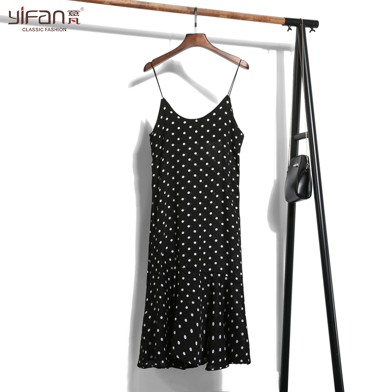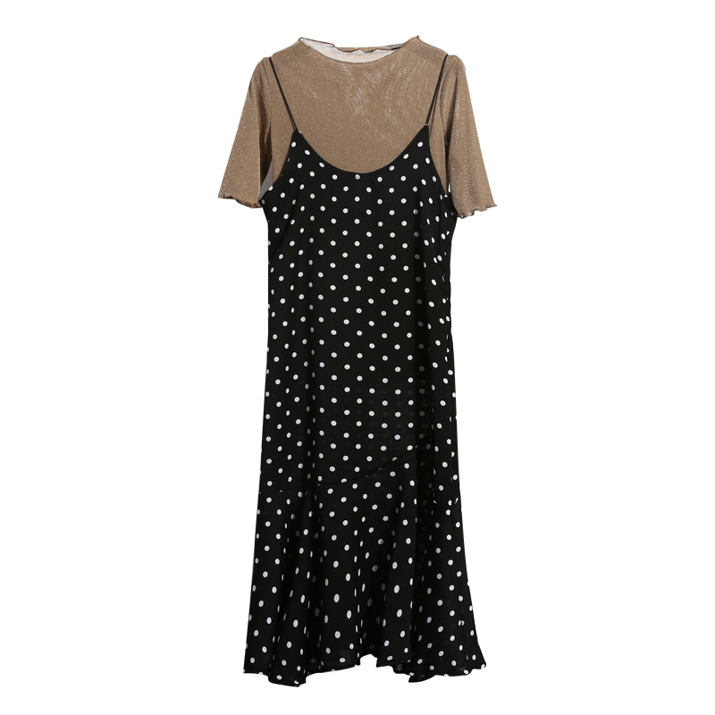 / 夏韓版波點吊帶裙女裝雪紡背帶裙側拉鏈修身顯瘦中長款連衣裙