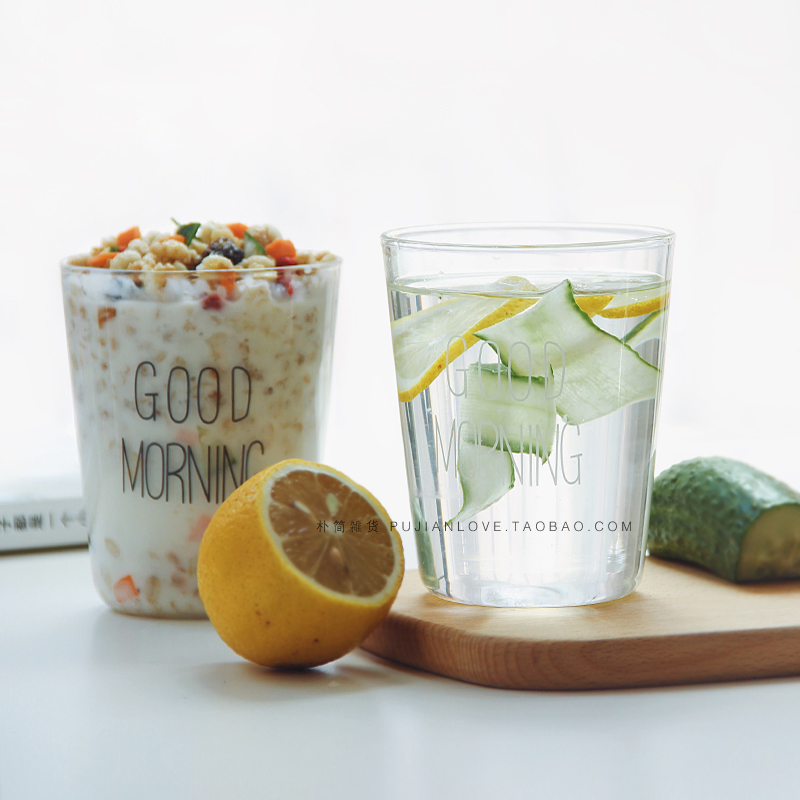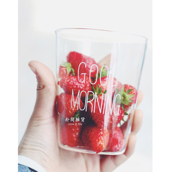 日式北歐風good morning玻璃杯果汁杯 字母杯 早安杯子 水杯