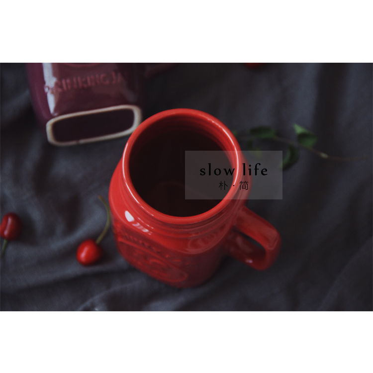 外貿出口復古浮雕梅森字母馬克陶瓷杯 水杯 牛奶果汁杯UFFXFAWe