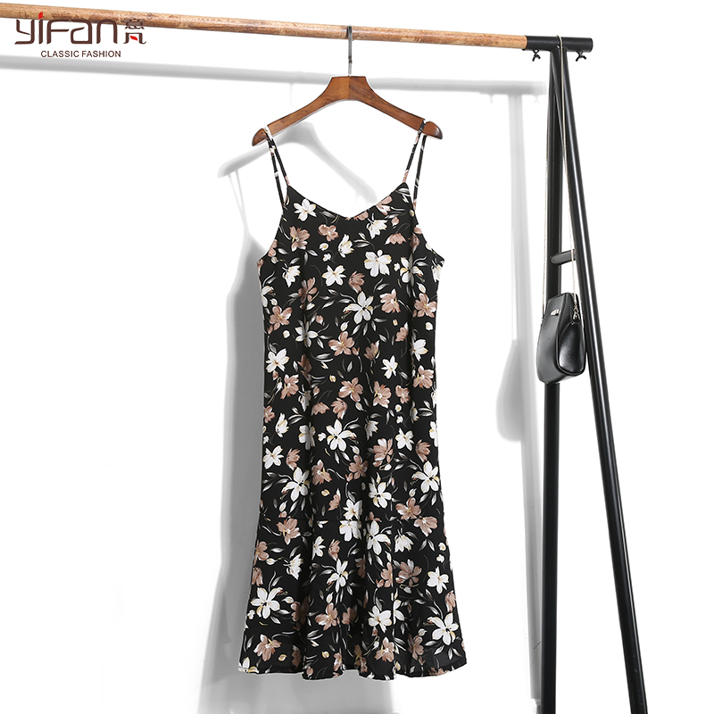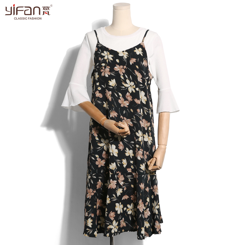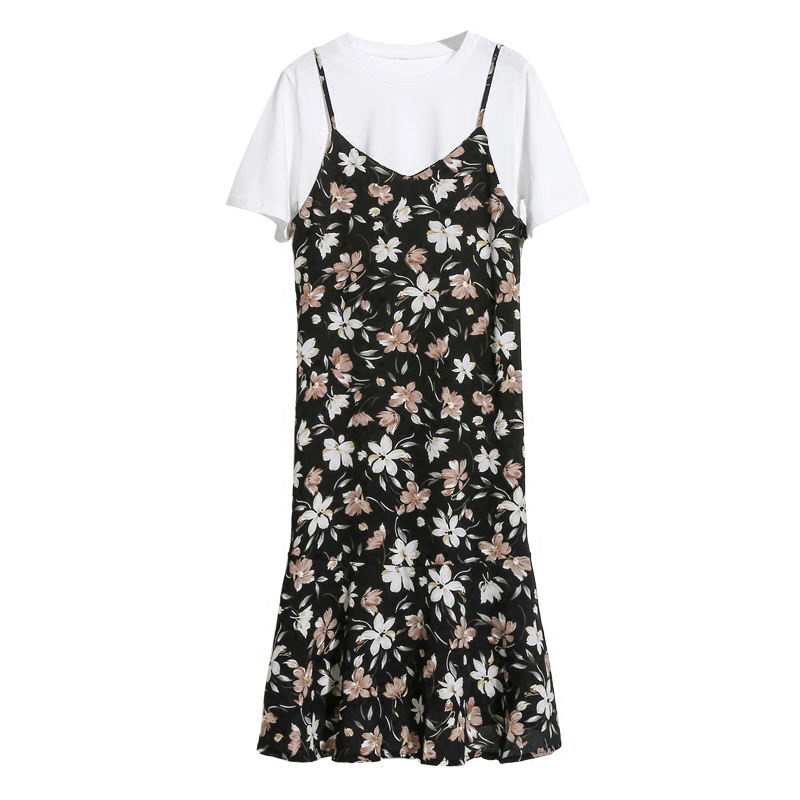 / 夏韓版寬松碎花裙荷葉邊中長款吊帶裙T恤兩件套雪紡連衣裙女