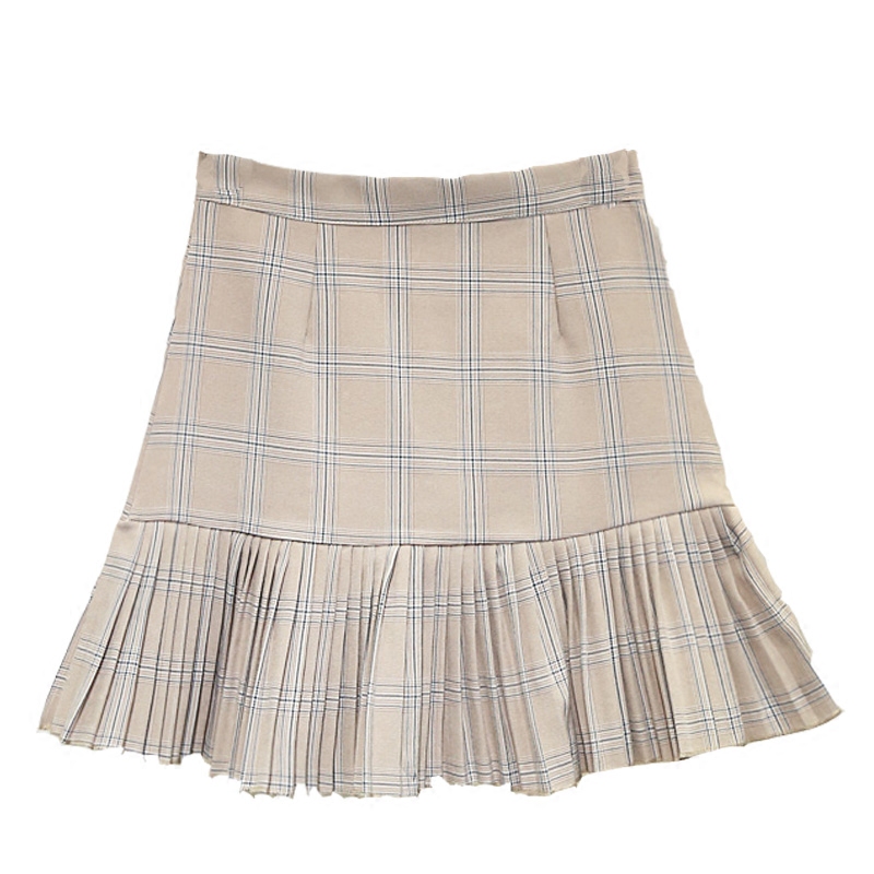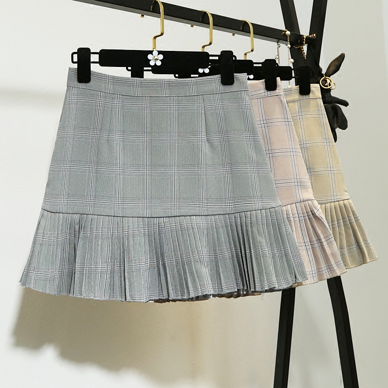 春裝新款韓版女裝格紋高腰顯瘦百褶裙半身裙修身A字短裙女夏