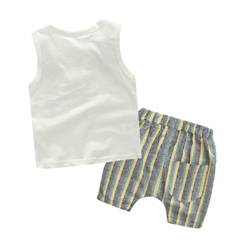 / 寶寶小熊套裝 夏裝新款韓男童童裝兒童背心條紋短褲子tz-2902