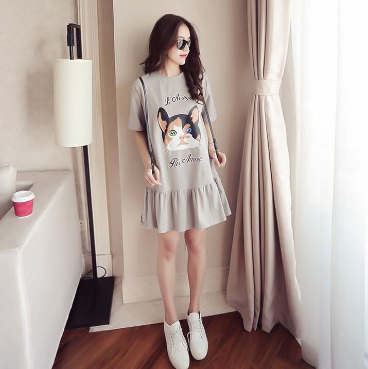 / 夏季連衣裙女大碼2017新款女裝潮中長款休閑寬松顯瘦短袖T恤裙子