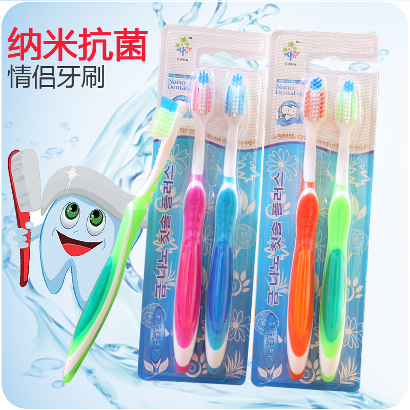 韓國納米雙層抗菌情侶牙刷細纖維軟毛2支裝套裝絲柔細毛牙刷批量