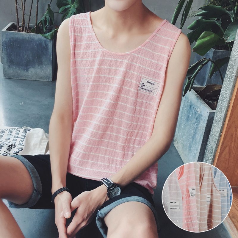 / 港風男裝棉麻條紋潮男寬松背心日韓清爽夏無袖tee