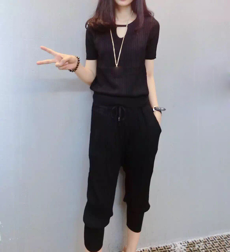 大碼女裝胖mm夏裝2017新款短袖T恤+哈倫褲胖妹妹時尚顯瘦套裝女潮