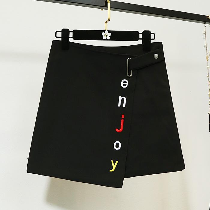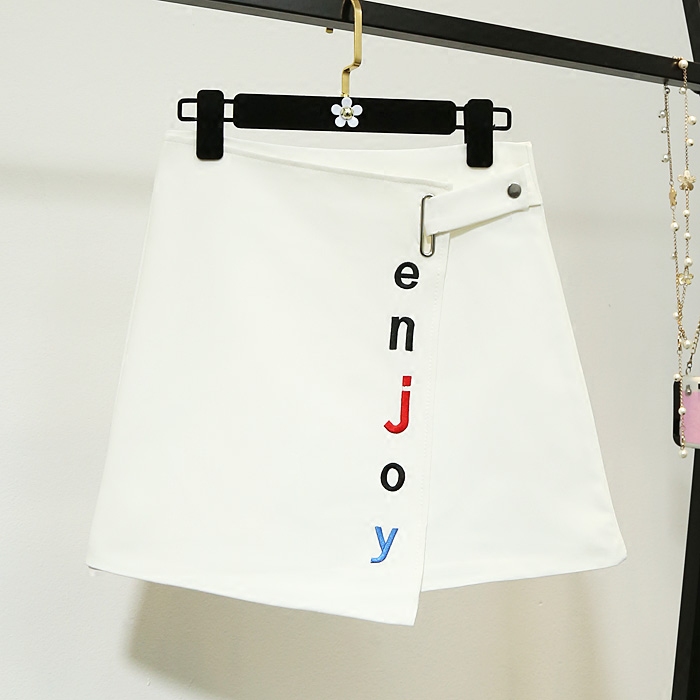 春夏季新款韓版女裝刺繡不規則半身裙高腰顯瘦包臀裙a字短裙