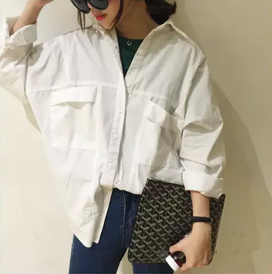 2017夏裝韓版寬松女小清新襯衫BF風學院白外套女學生長袖襯衣開衫