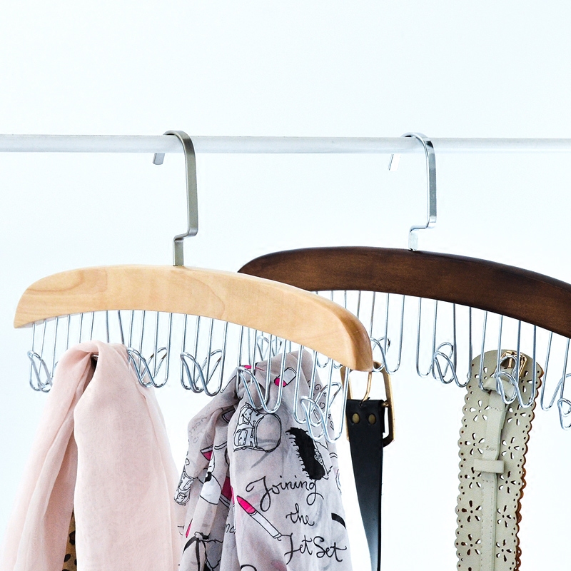 簡約實木皮帶掛衣鉤領帶架12掛鉤創意多功能絲巾圍巾鉤