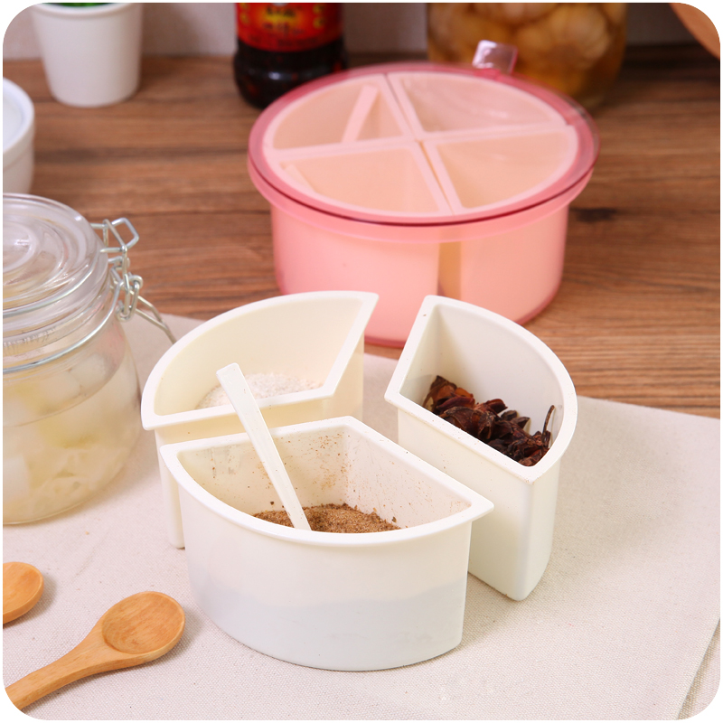 / 創意調料盒廚房用品調料瓶多用途分隔式三色創意調味盒塑料鹽罐