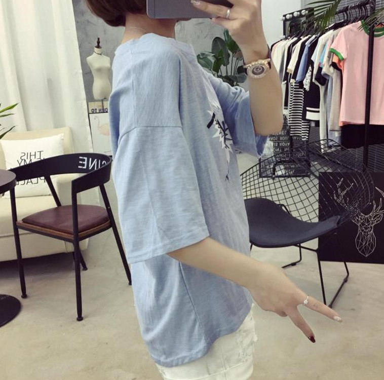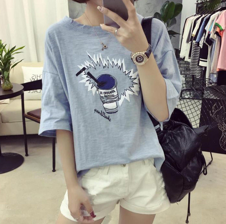 夏裝新款顯瘦學生t恤女圓領卡通印花竹節棉上衣短袖韓版體恤