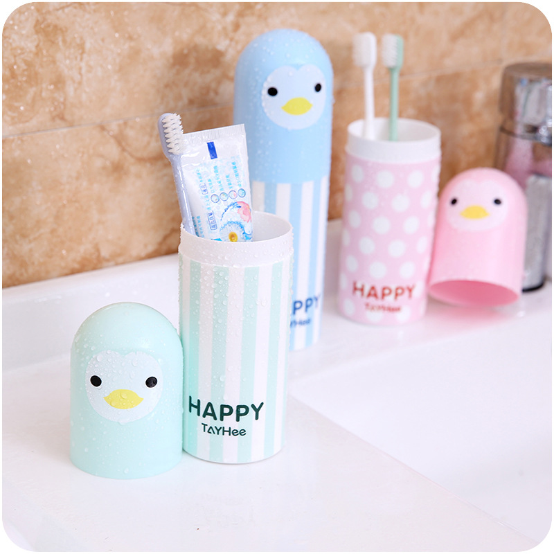 / 可愛牙刷盒創意卡通企鵝牙具盒 塑料旅行便攜情侶洗漱牙刷杯收納