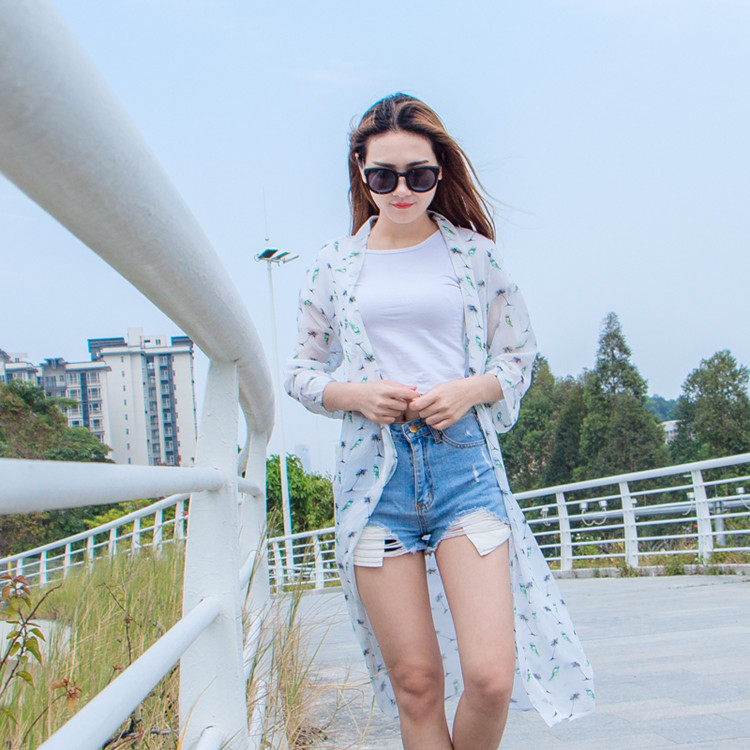 / 2017夏季大碼開衫超薄款中長款雪紡外套寬松百搭沙灘防曬衣披肩女