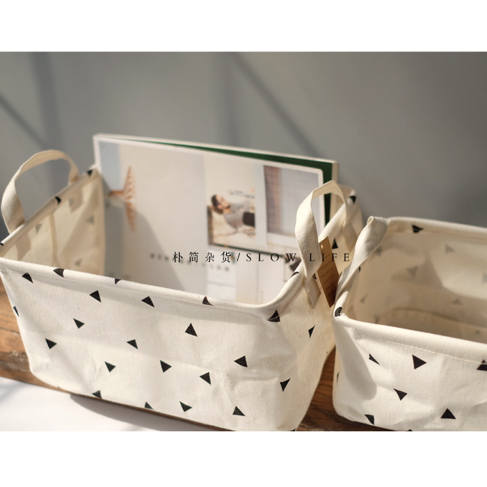 樸簡|北歐黑白三角棉麻桌面收納籃收納盒 布藝儲物籃家居收納箱