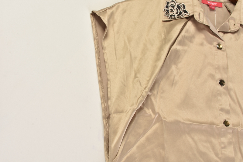 淑女氣質單排扣翻領無袖寬松顯瘦T恤復古風夏款上衣