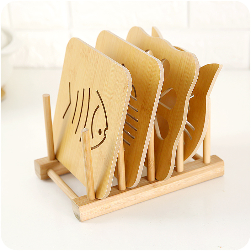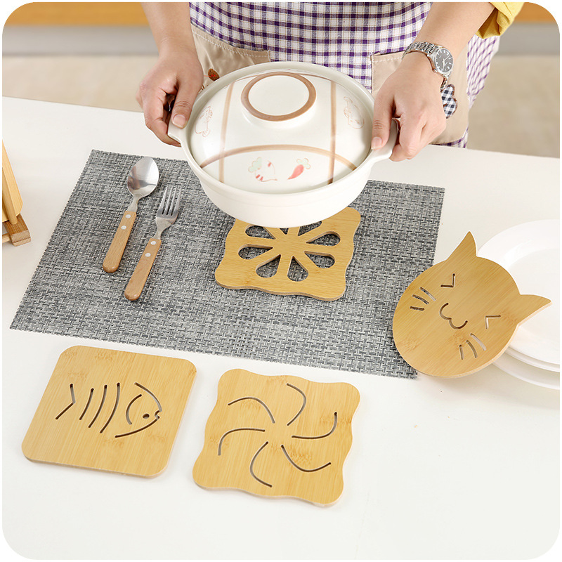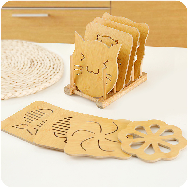 / 碗墊木質鏤空花紋餐桌隔熱杯墊9件套裝純色卡通可愛防燙砂鍋墊架