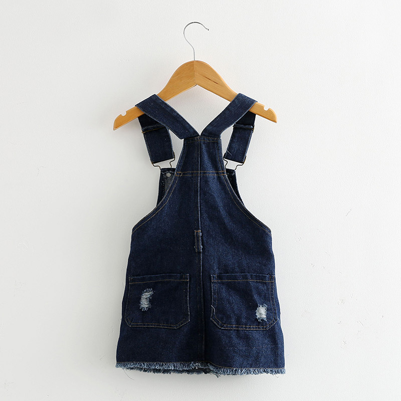 寶寶破洞背帶裙 秋裝新款休閑童裝女童裝兒童牛仔裙子qz-2905