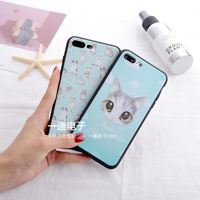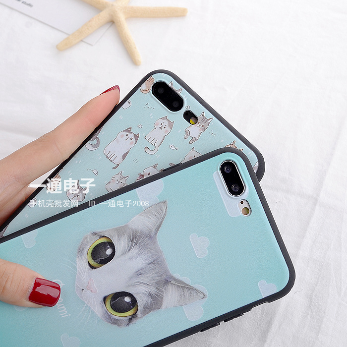 / 貓咪浮雕iPhone7手機殼硅膠蘋果6s保護套7plus卡通防摔軟殼6P情侶