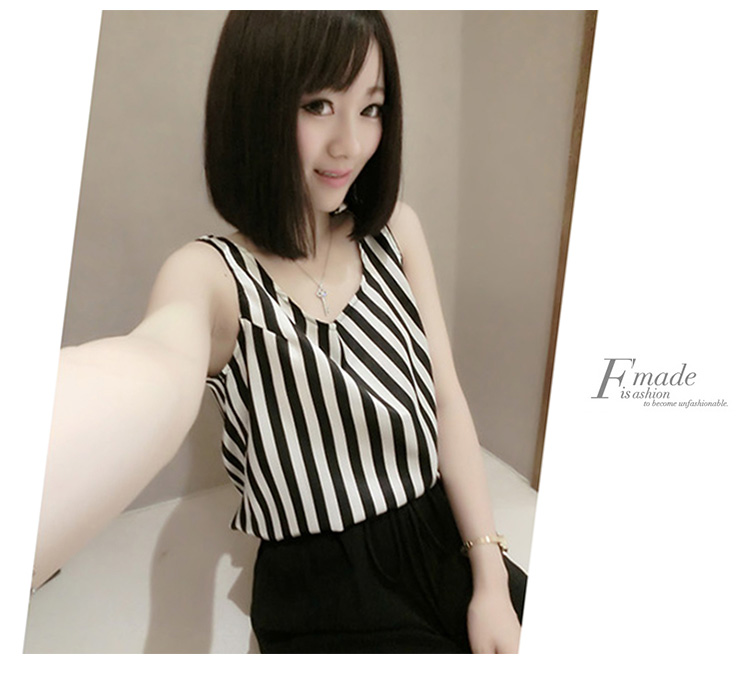 2017夏季新款韓版黑白豎條紋U字修身雪紡坎袖吊帶背心女無袖上衣t