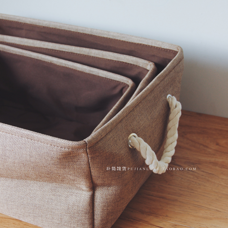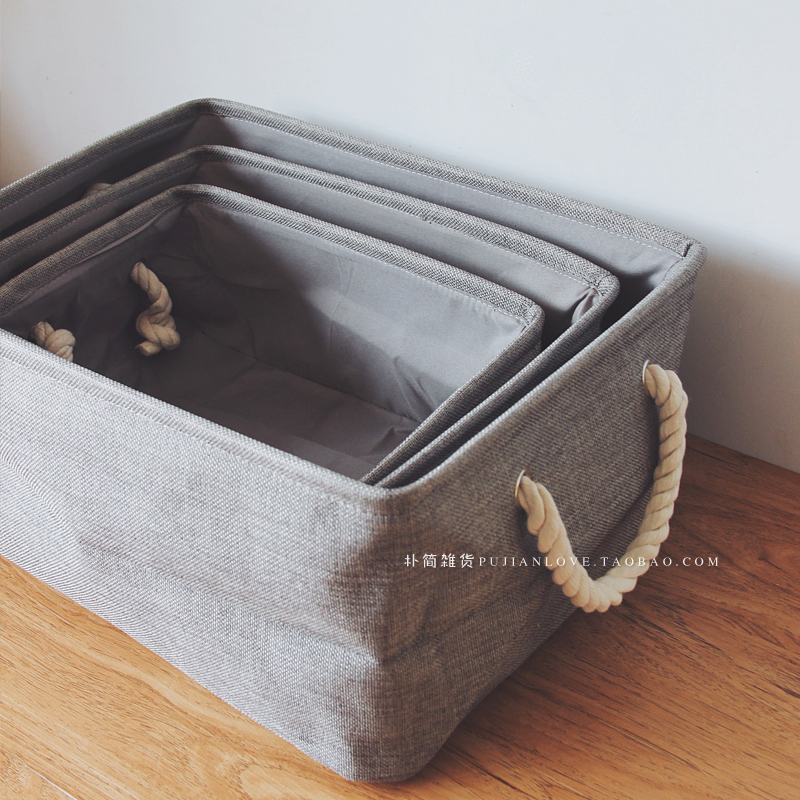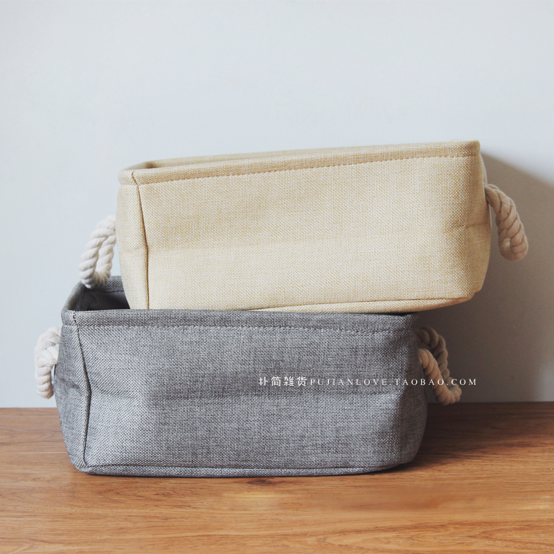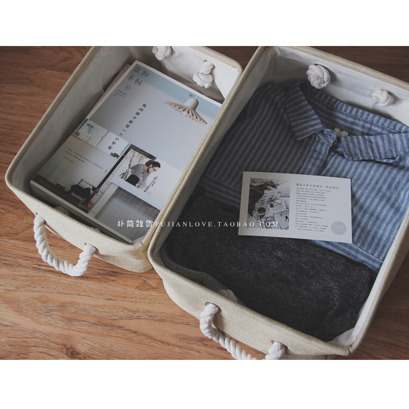 日式簡約純色棉麻宿舍收納箱防潮衣服整理筐 儲物盒收納袋
