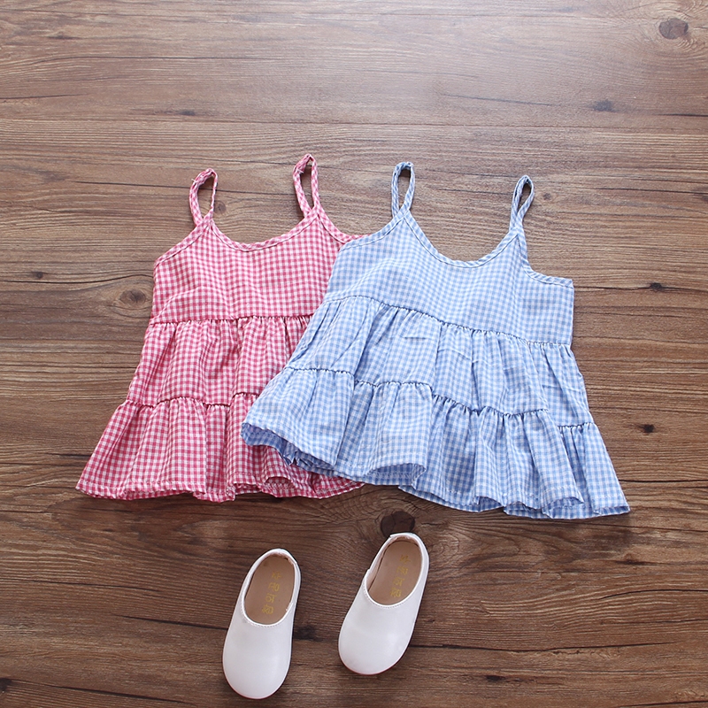 女童夏裝新款寶寶吊帶裙格子薄款寬松裙子嬰幼兒小清新連衣裙