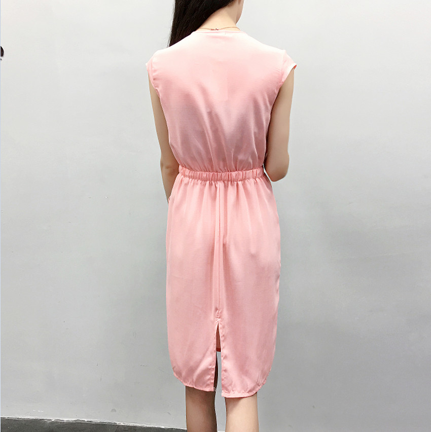 裙子女夏2017新款韓版收腰顯瘦V領短袖中長款大碼夏季連衣裙中裙