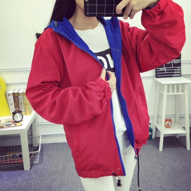 春季新款學院風軟妹粉嫩糖果色雙面寬松百搭風衣外套女連帽棒球服