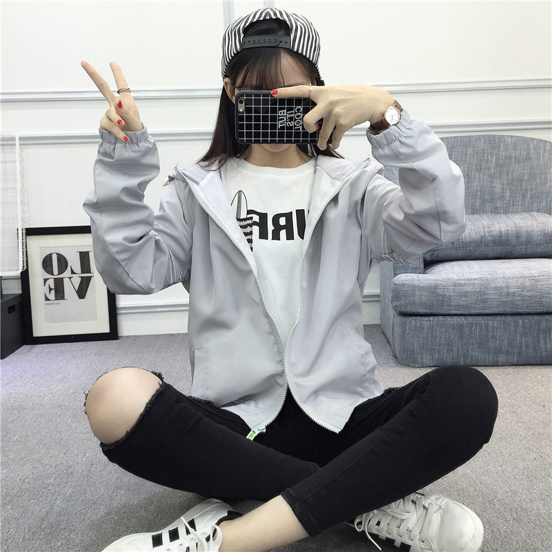 2017春秋季原宿運動服3M反光衣男女裝大碼休閑外套情侶防風衣班服