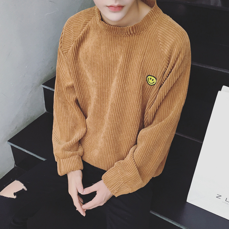 / 秋季新款潮款寬松立領燈芯絨純色男士圓領套頭衛衣