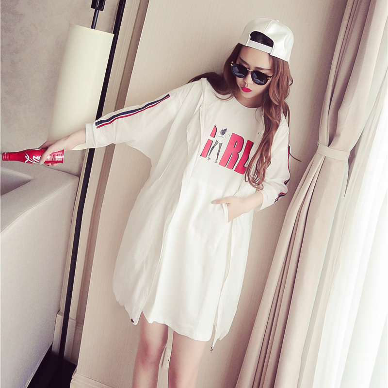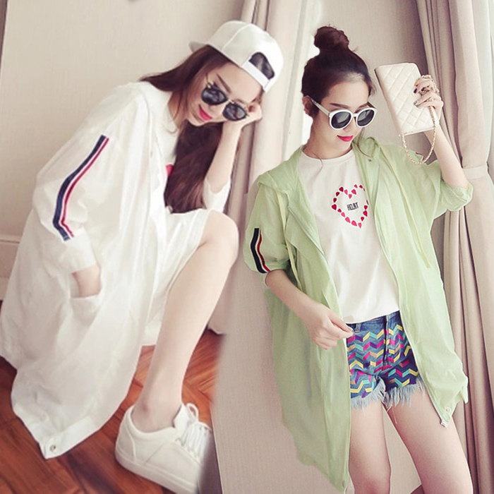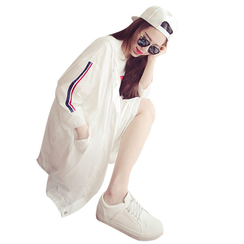 2017韓版寬松bf百搭新款長袖防曬衣女中長款夏季薄外套顯瘦學生潮